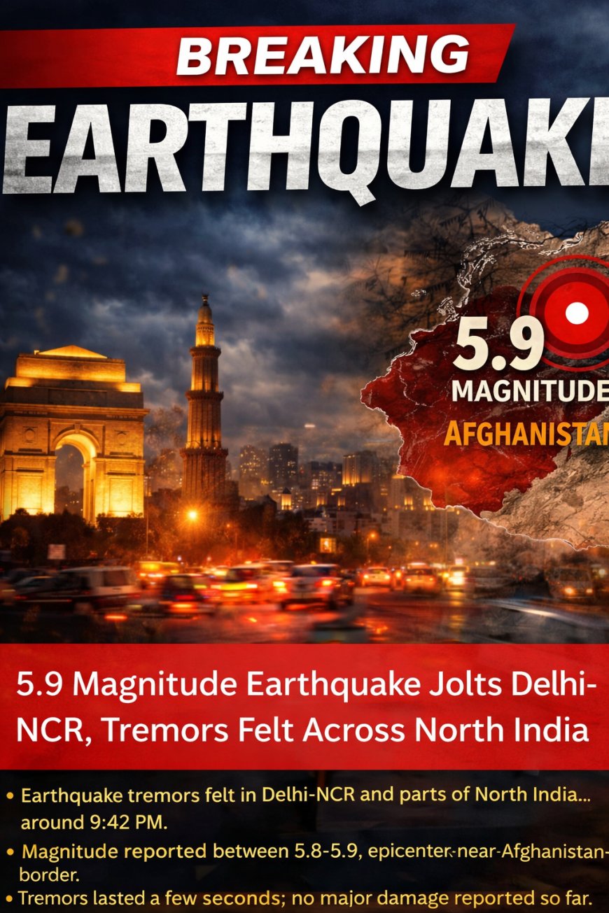 A 5.9 magnitude Afghanistan earthquake triggered tremors across North India, including Delhi-NCR, Punjab, Haryana, and J&K, causing brief panic.
