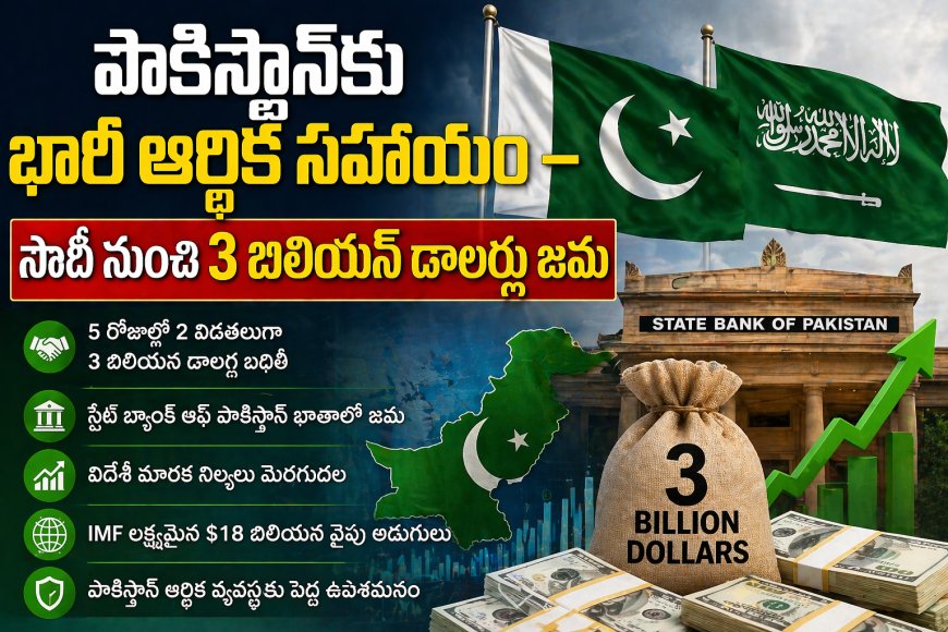 పాకిస్థాన్కు సౌదీ అరేబియా నుంచి 3 బిలియన్ డాలర్ల సహాయం లభించింది. ఈ నిధులు IMF లక్ష్యాలకు చేరుకునేందుకు ఆర్థిక ఉపశమనం ఇచ్చాయి.